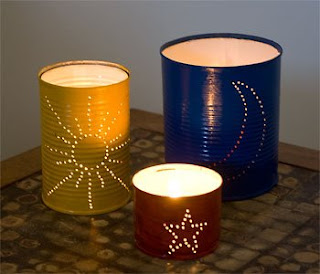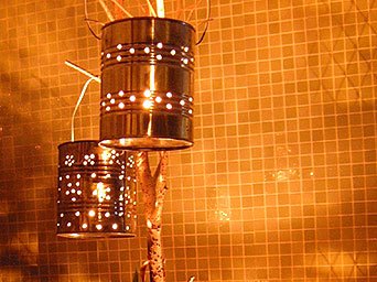 Apoie a lata sobre um pano e comece a perfurar a lata para formar desenhos. Quanto mais furos, mais bonito fica o resultado.