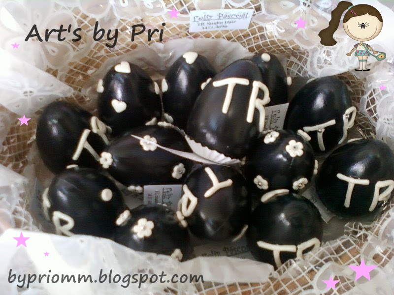 ovinhos de plástico - pintados à mão - decorados com biscuit - com guloseimas dentro